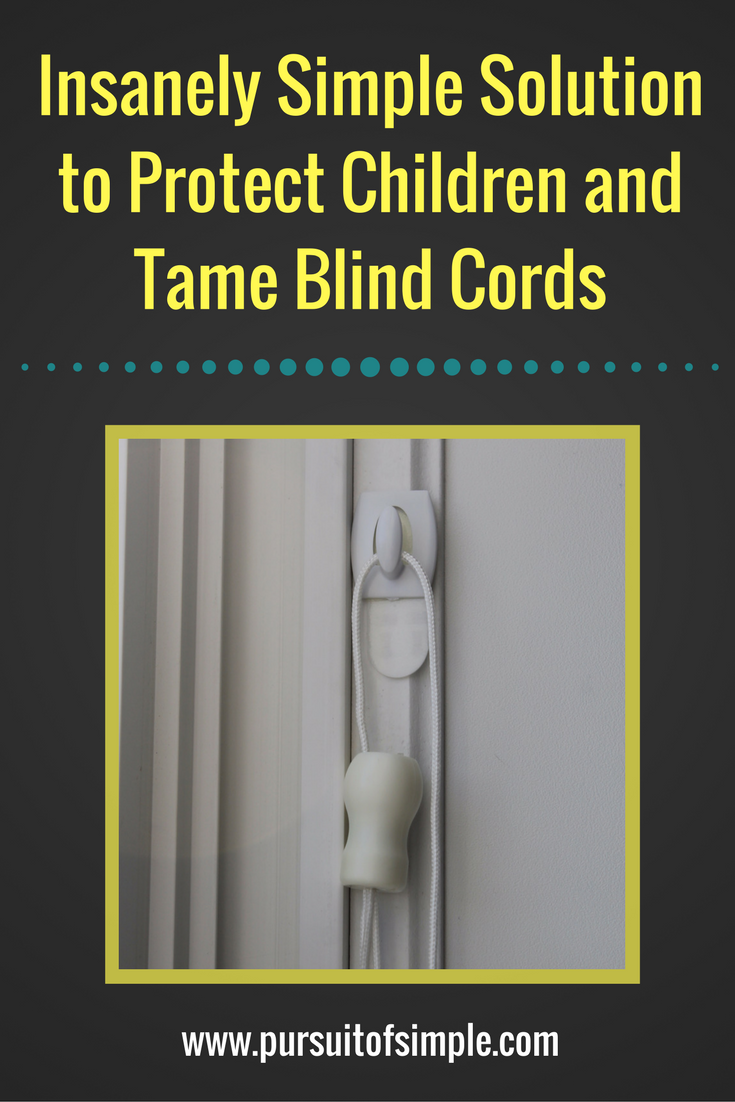 I have to be honest. I have never actually tried out any of the products on the market that are made specifically to secure blind cords, and supposedly, keep them from getting tangled. We never secured our blind cords until our son was old enough and mobile enough to reach them, but once we decided to address this problem, my husband had a wonderfully simple idea (which is my favorite kind of idea, as you know. 😉) Ready?
