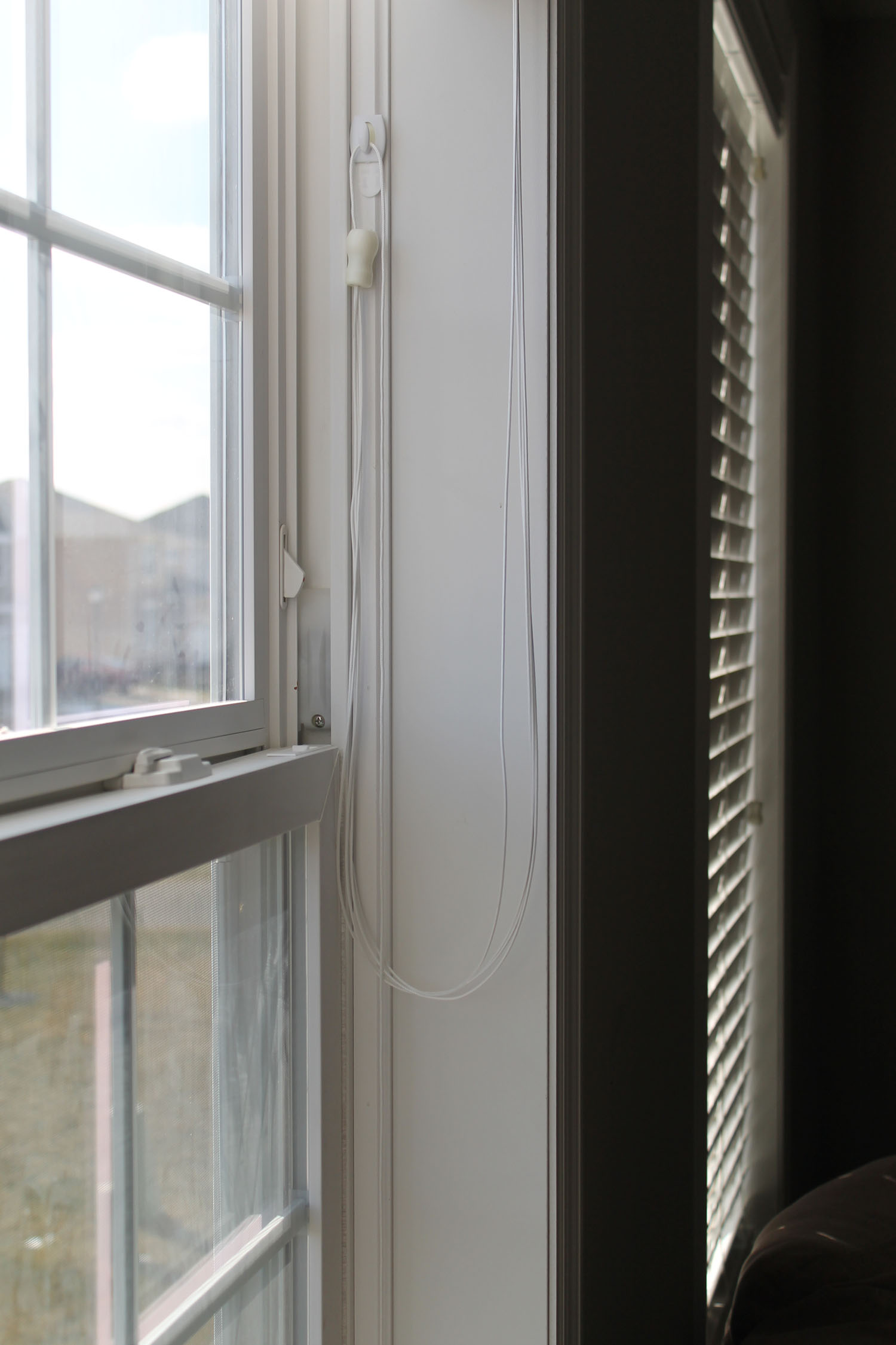 Please understand that I am not promoting CommandTM Hooks as the safest option out there to protect children from blind strangulation, nor is this post sponsored by 3M in any way. I am simply offering this as a potential solution for those who have either chosen to use blinds or for those who cannot afford (or are not allowed) to replace what is already installed on the windows in your home. Consider this option carefully and at your own risk.